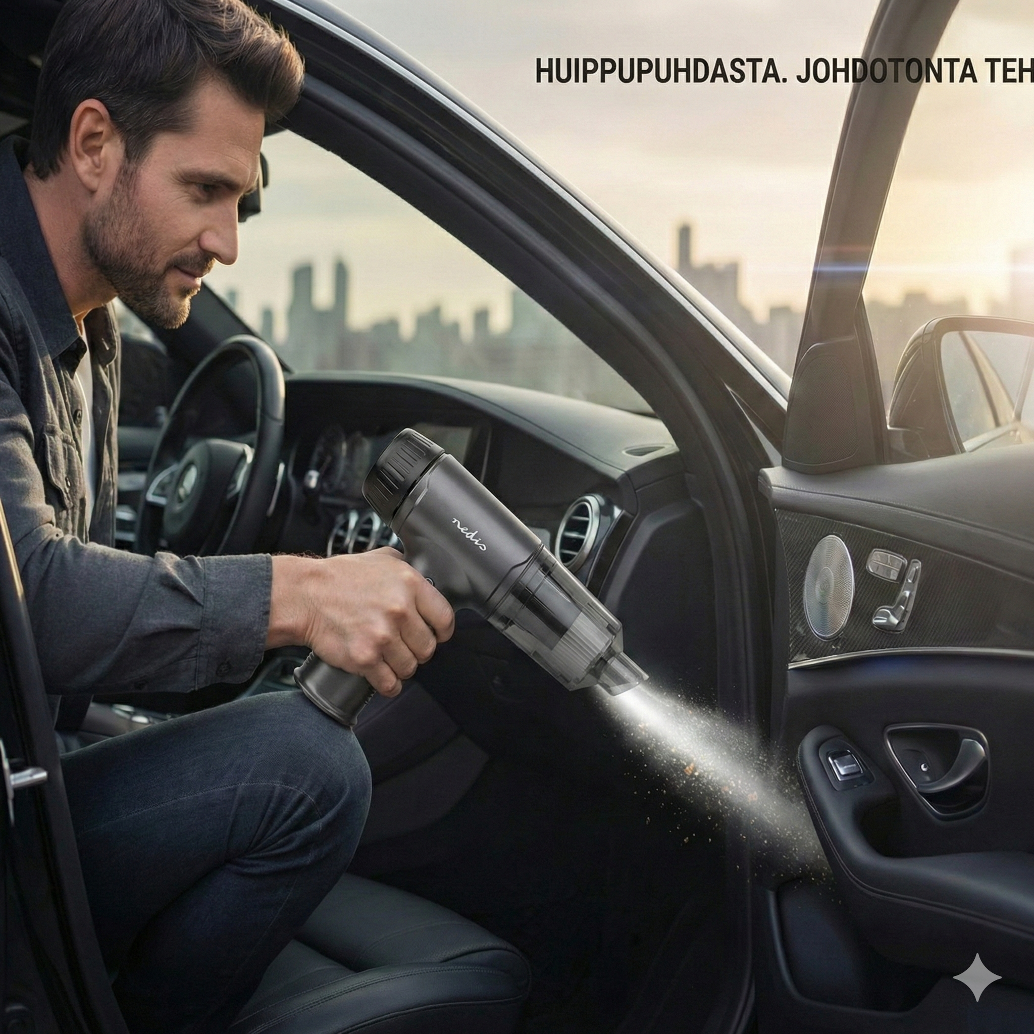 Kätesi ulottuvilla on entistä tehokkaampi ja vaivattomampi 2-in-1 autoimuri, joka imee pölyn, murut ja karvat autosi penkeiltä. Puhdistaa myös vaikeammista väleistä sekä latautuu nopeasti autossasi seuraavaa käyttöä varten. Vähennät autopesula käyntejä ja imuroit autosi säännöllisesti.